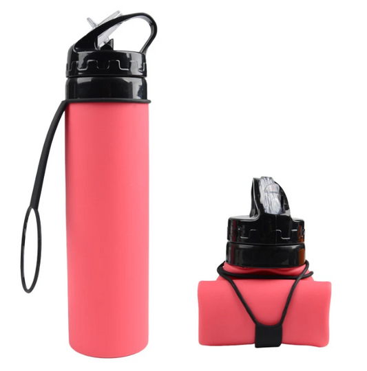 Collapsible Foldable Silicone Water Bottle, with Straw, 600ml, Ideal for Sport - WBI0001