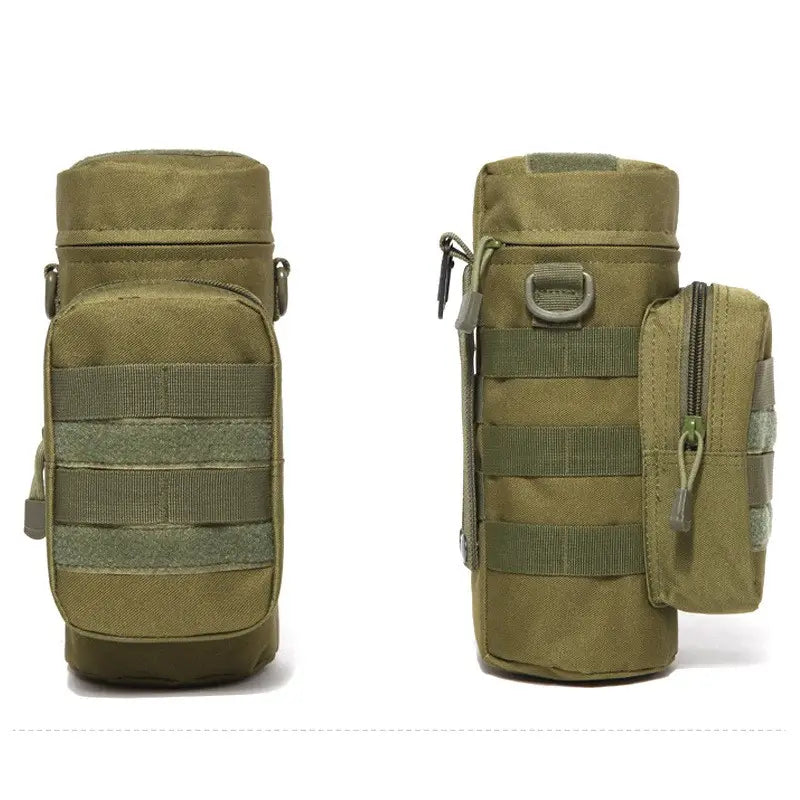 - Description: The Outdoor Water Bottle Bag is a versatile accessory designed for outdoor enthusiasts who enjoy activities like hiking, climbing, and traveling. This bag is specifically designed to securely hold and carry water bottles, keeping you hydrated on your adventures. The tactical MOLLE (Modular Lightweight Load-carrying Equipment) system allows for easy attachment to backpacks, belts, or other gear with MOLLE webbing. It provides convenient access to your water bottle while keeping it secure during vigorous activities. The durable and water-resistant materials ensure the bag withstands outdoor conditions. Whether you're exploring the wilderness or embarking on a challenging climb, this tactical MOLLE accessory bag is a reliable and functional choice to keep your water bottle within reach.