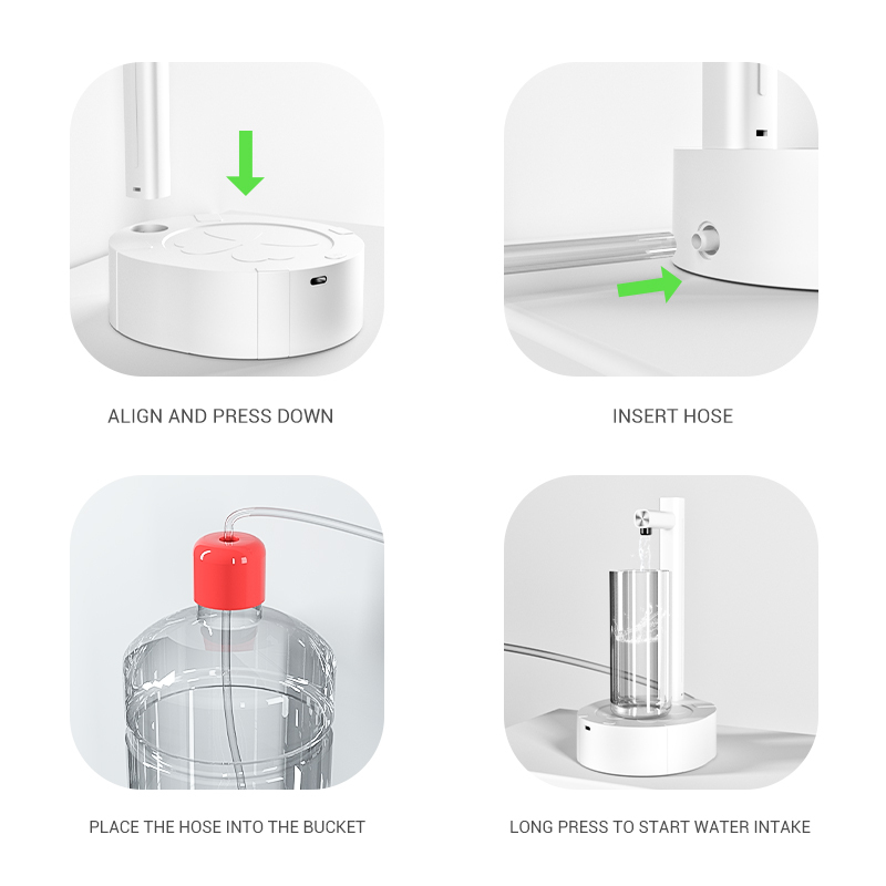Battery: Built in rechargeable 1200mAh battery. Can used for 30-40 days or around 4-6 bottles of 5 gallon water once full charged. No need to charge every day.